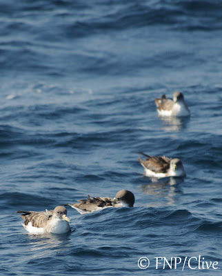 Just like the smaller vultures at a carcass, the Balearic Shearwaters (below) operate on the fringe as they wait for scraps
